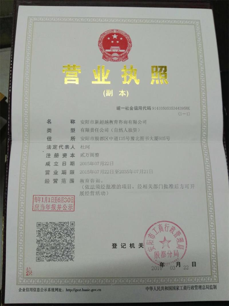 安陽市新超越教育咨詢有限公司,是教師招教培訓的文化教育培訓機構。她坐落在甲骨文的發(fā)現(xiàn)地,周易的故鄉(xiāng),岳飛的故里,紅旗渠精神的搖籃------河南安陽。為了民族教育的振興,為了安陽三千年文化的傳承,她努力打造著屬于豫北本土的職業(yè)培訓教育!